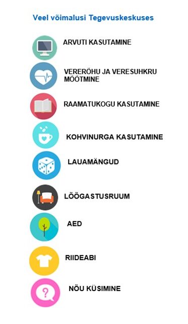 Tegevuskeskus koondab inimese jaoks vajalikud lisatoetused, näiteks teeme koostööd Toidupangaga, korraldame riide ja mööbli osas abi iseseisvalt elu alustavale intellektipuudega inimesele, korraldame palju erinevaid koolitusi intellektipuudega inimestele. Tegevuskeskus on oluline sotsiaalse suhtlemise, vaba aja veetmise ning inimesele sobivate tegevuste väljaselgitamise koht pakkudes ka erinevaid töötamise vorme ja viise (toetatud töötamine, kaitstud töötamine ja kogukonnas erinevate rollide kaudu abistamine nt toidu tegemisel, koristamisel ja ürituste korraldamisel.